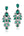 Błyszczące, ciemnozielone długie kolczyki na bal z kryształkami w kształcie liścia