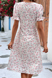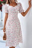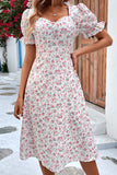 Kwiatowa biała sukienka z krótkim rękawem