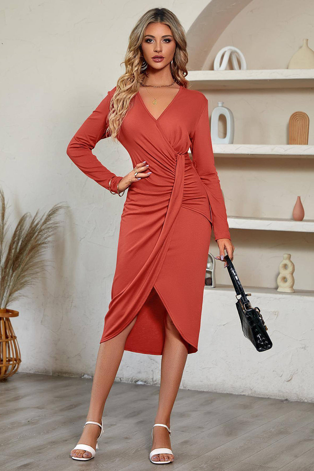 Czarna Sukienki Na Impreze Z Długim Rękawem I Dekoltem W Serek