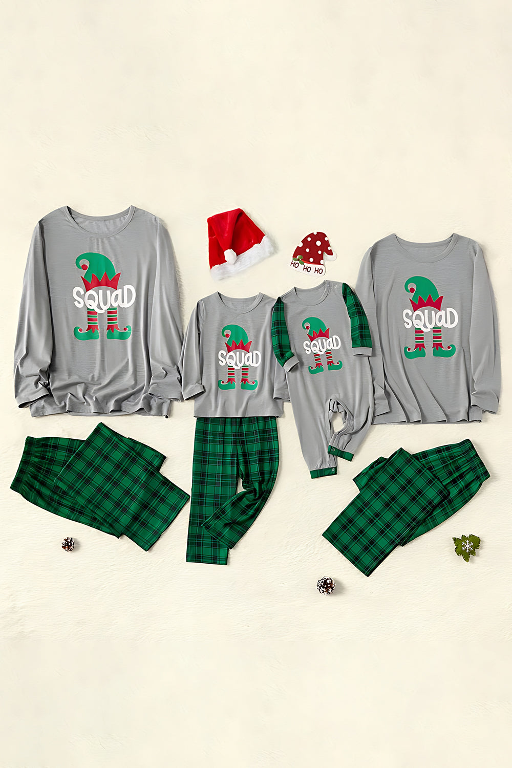 Szaro-Zielony Pled Okrągły Dekolt Druk Rodzinne Ubrania Swiateczne