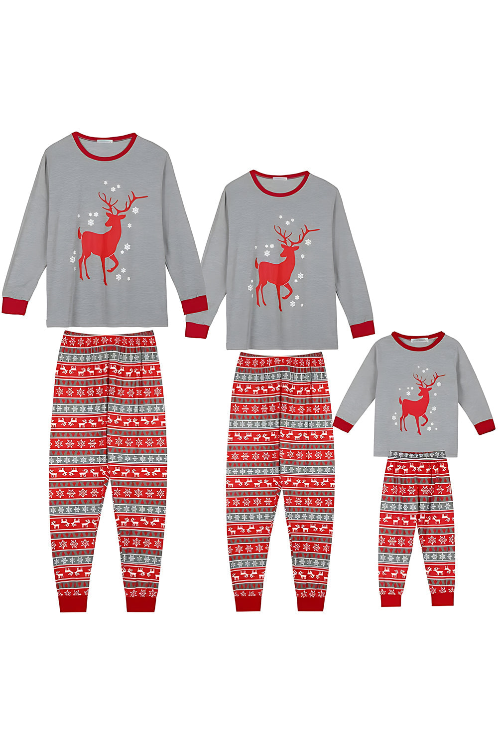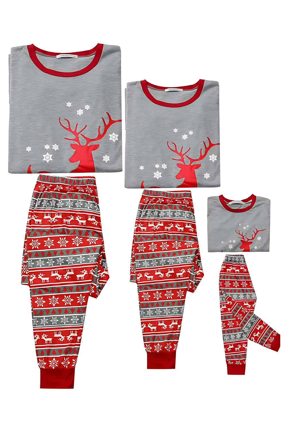 Szaro-Czerwony Okrągły Dekolt Paski Jeleń Druk Rodzinne Ubrania Swiateczne