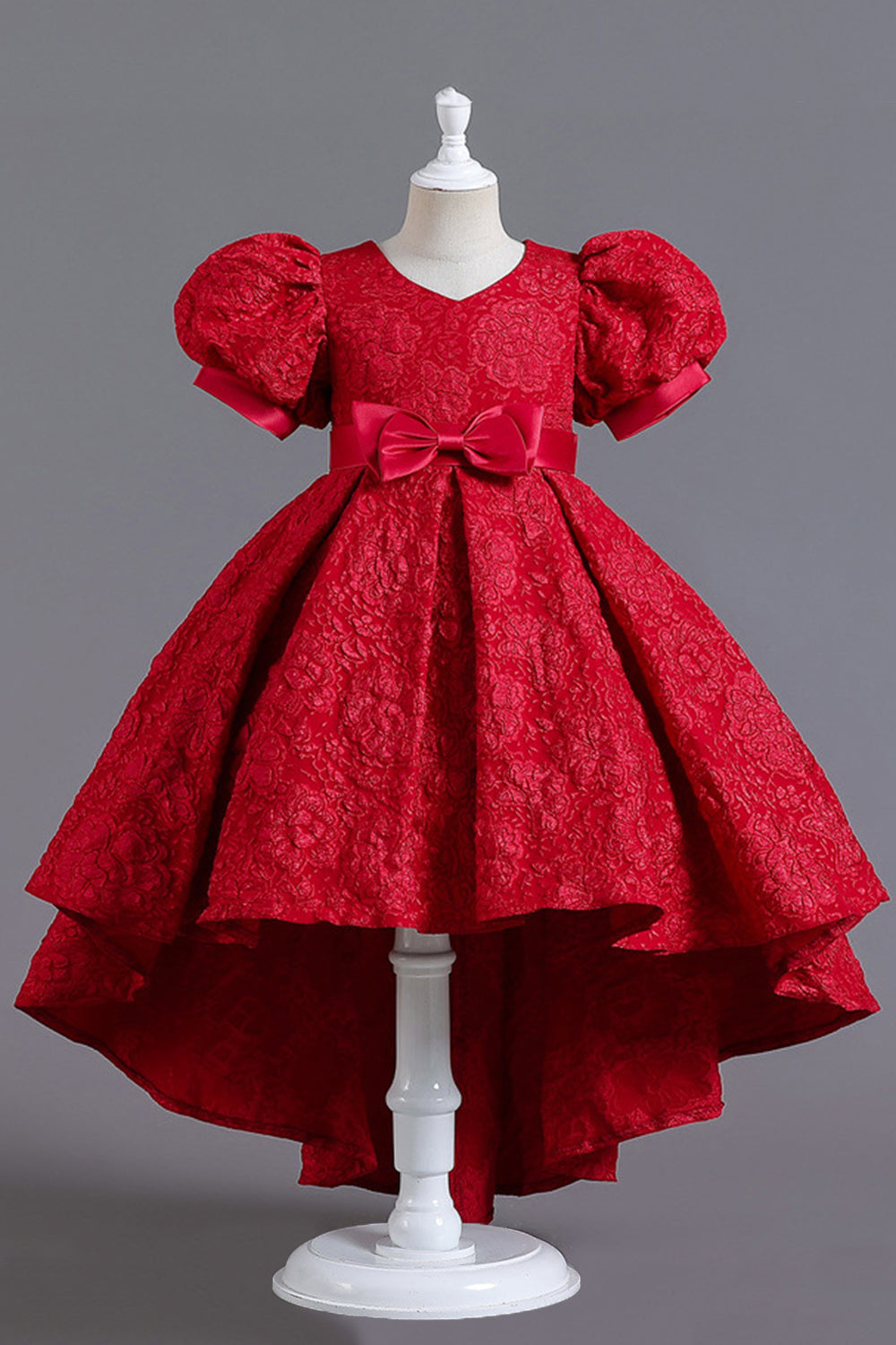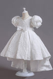 Biała Dekolt V Sukienki Dla Dziewczynek z Krótki Rękaw
