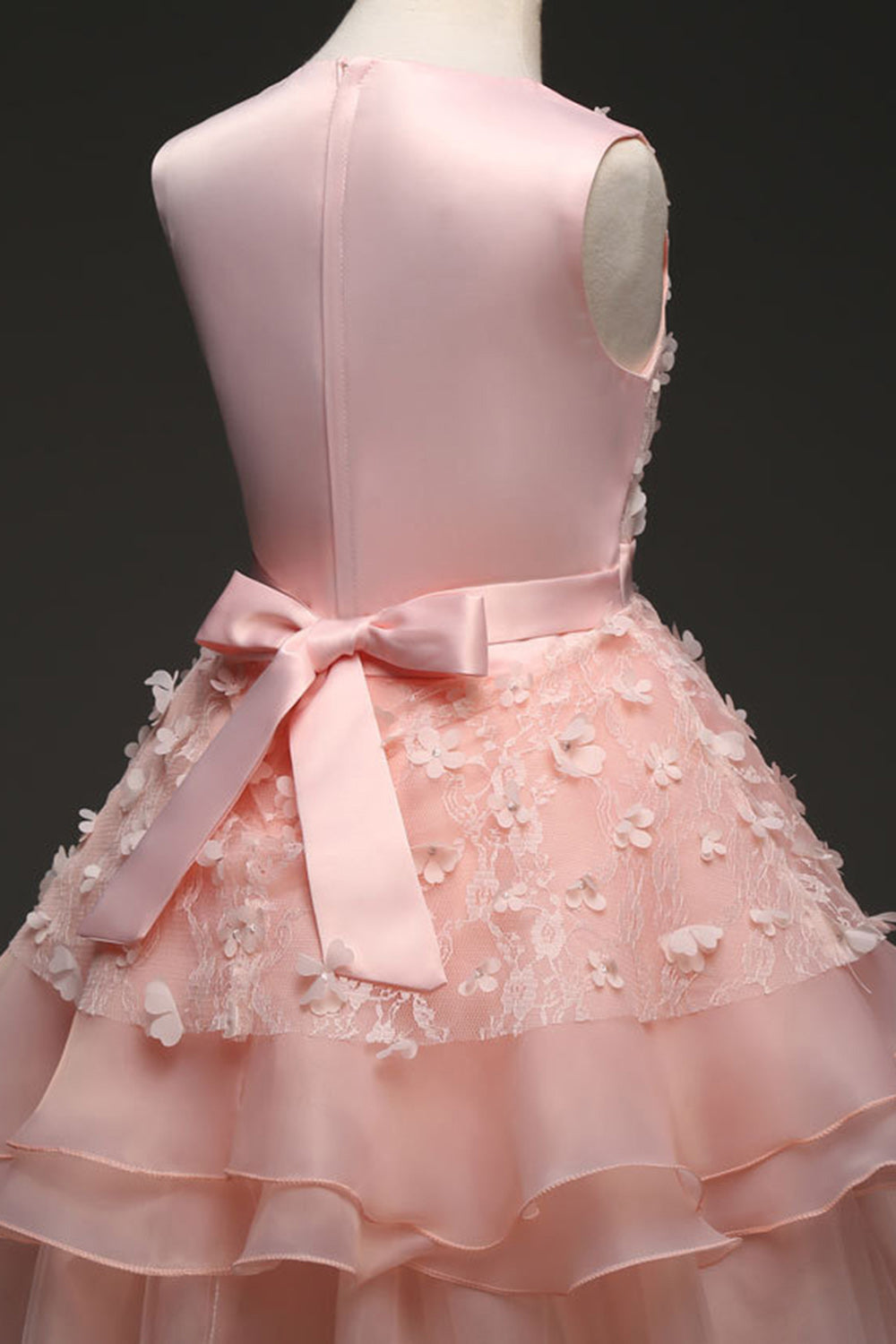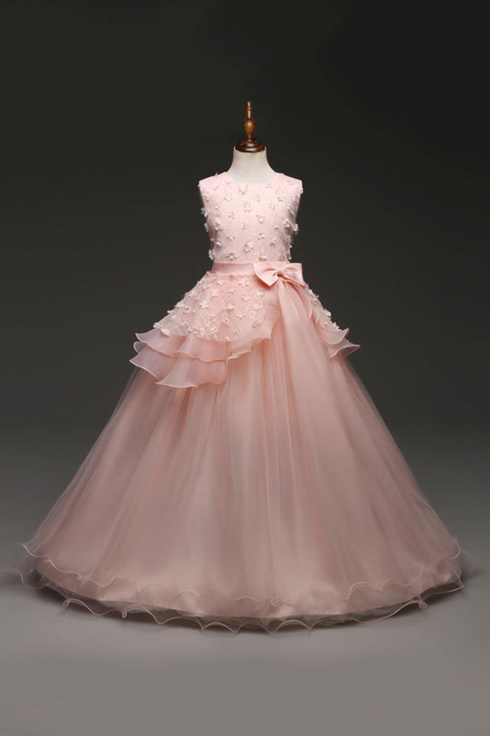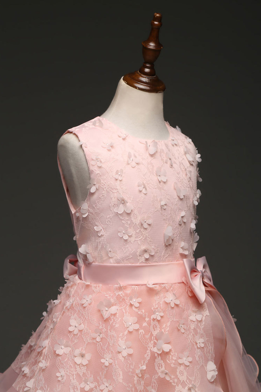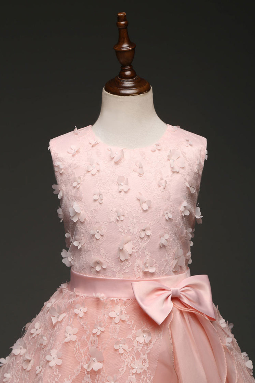Boat Neck Bez rękawów Różowe sukienki dziewczęce z kokardą