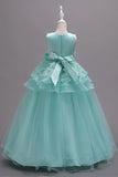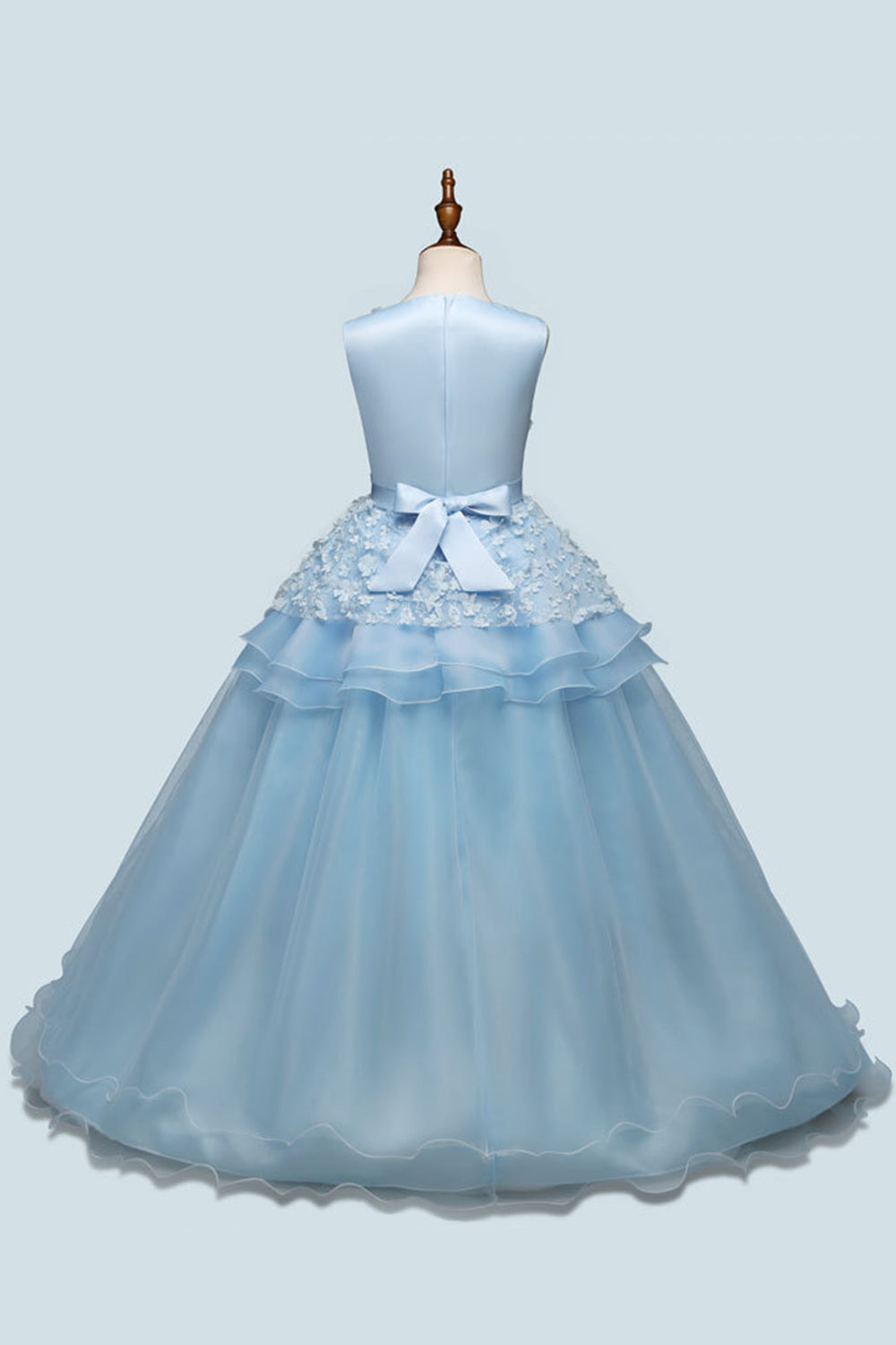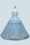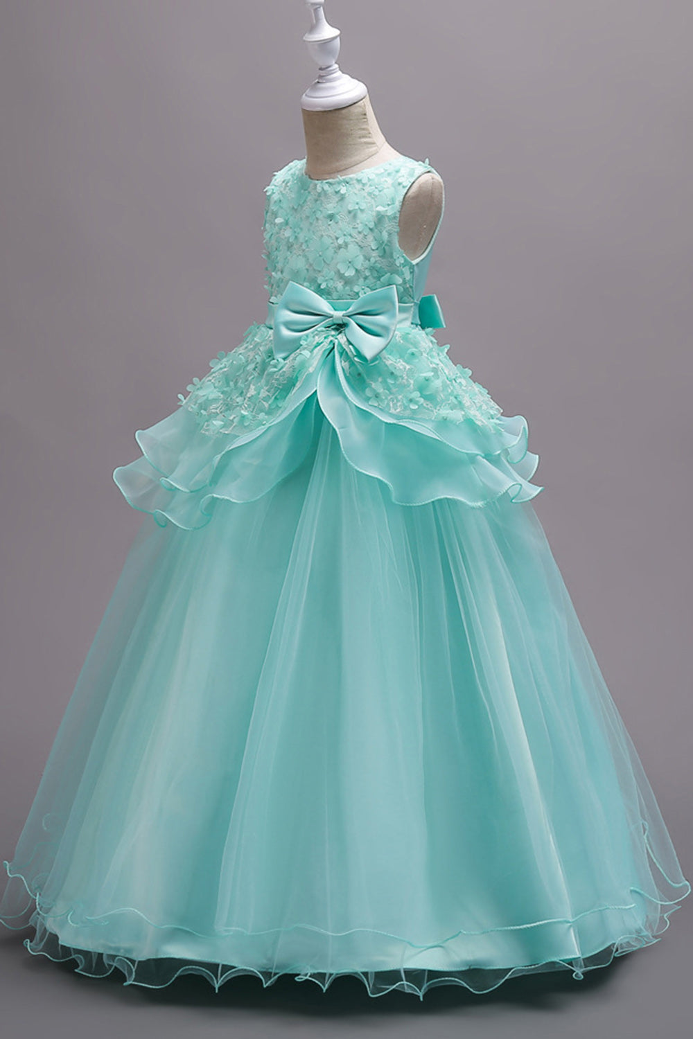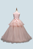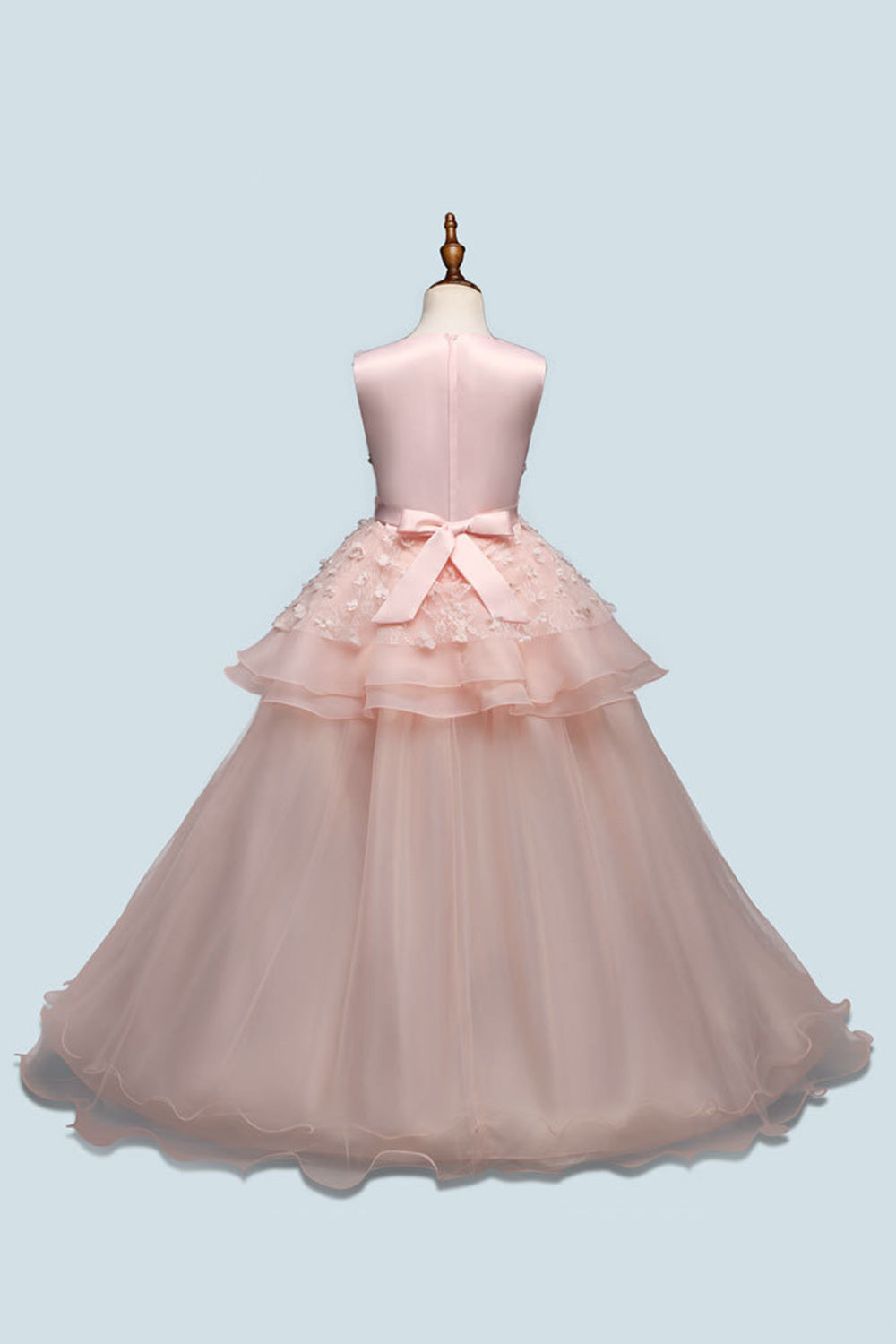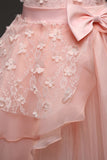 Boat Neck Bez rękawów Różowe sukienki dziewczęce z kokardą