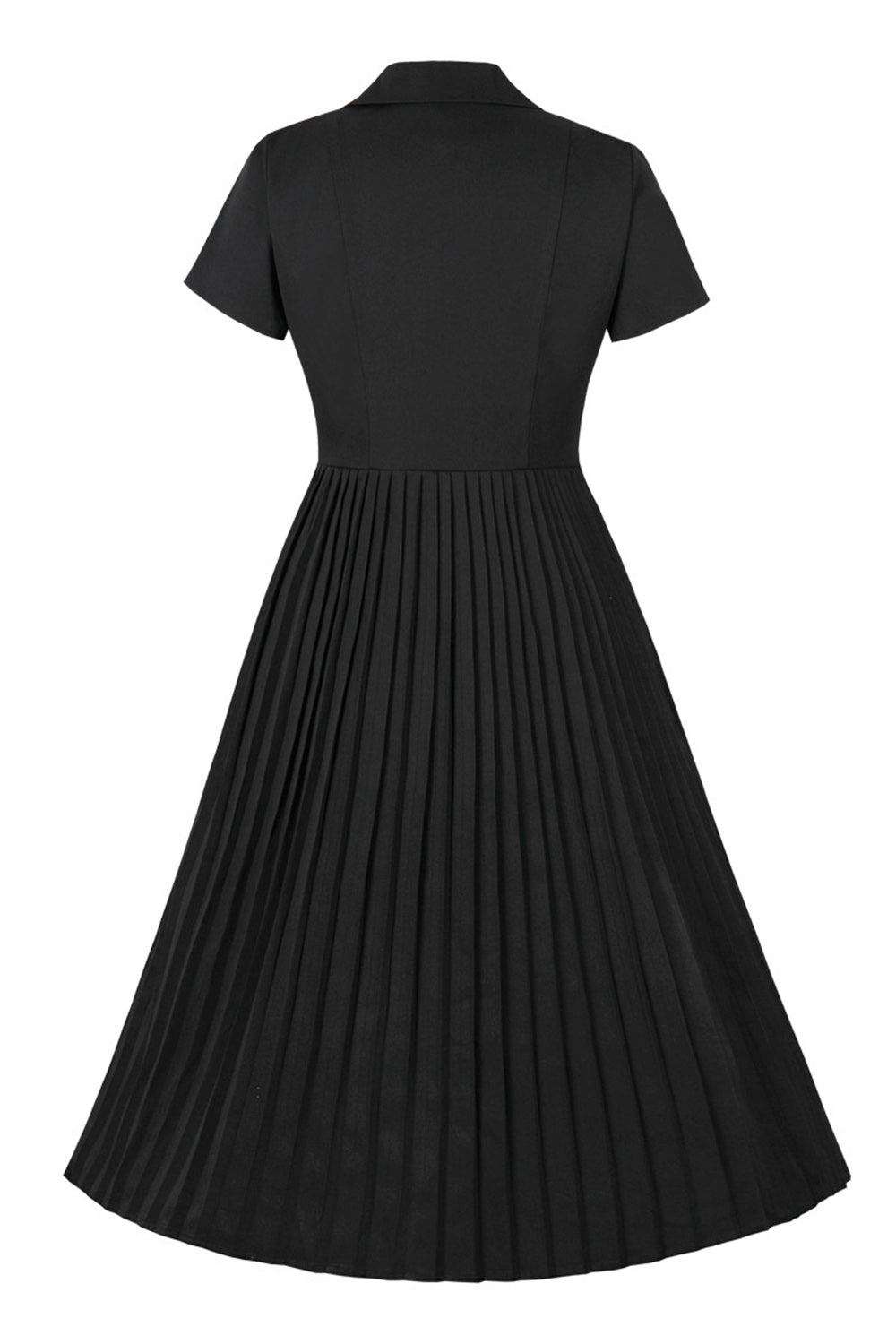 Czarna Sukienka Z Dekoltem W Serek Sukienka Lata 50 Z Krótkim Rękawem
