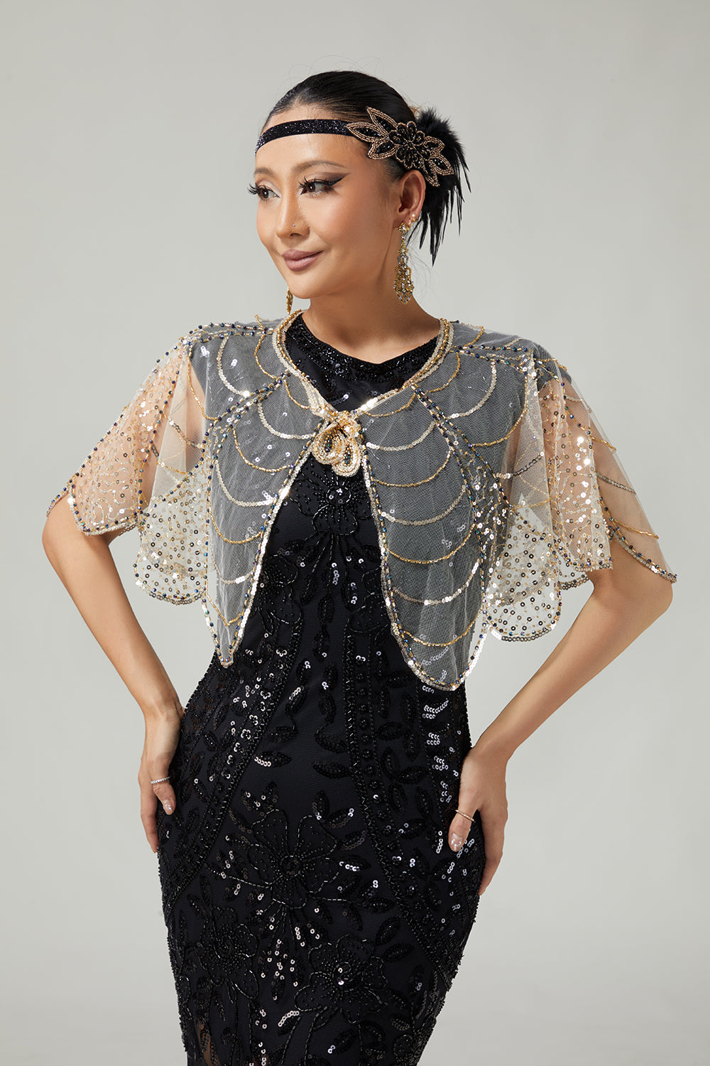 Damska peleryna z cekinami z lat 20. XX wieku –, złota