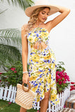 Dekolt Halter Żółta Kwiatowy Nadruk Sukienki Letnie