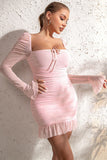 Kwadratowy Dekolt Różowa Sukienki Ołówkowe Z Dlugim Rekawem