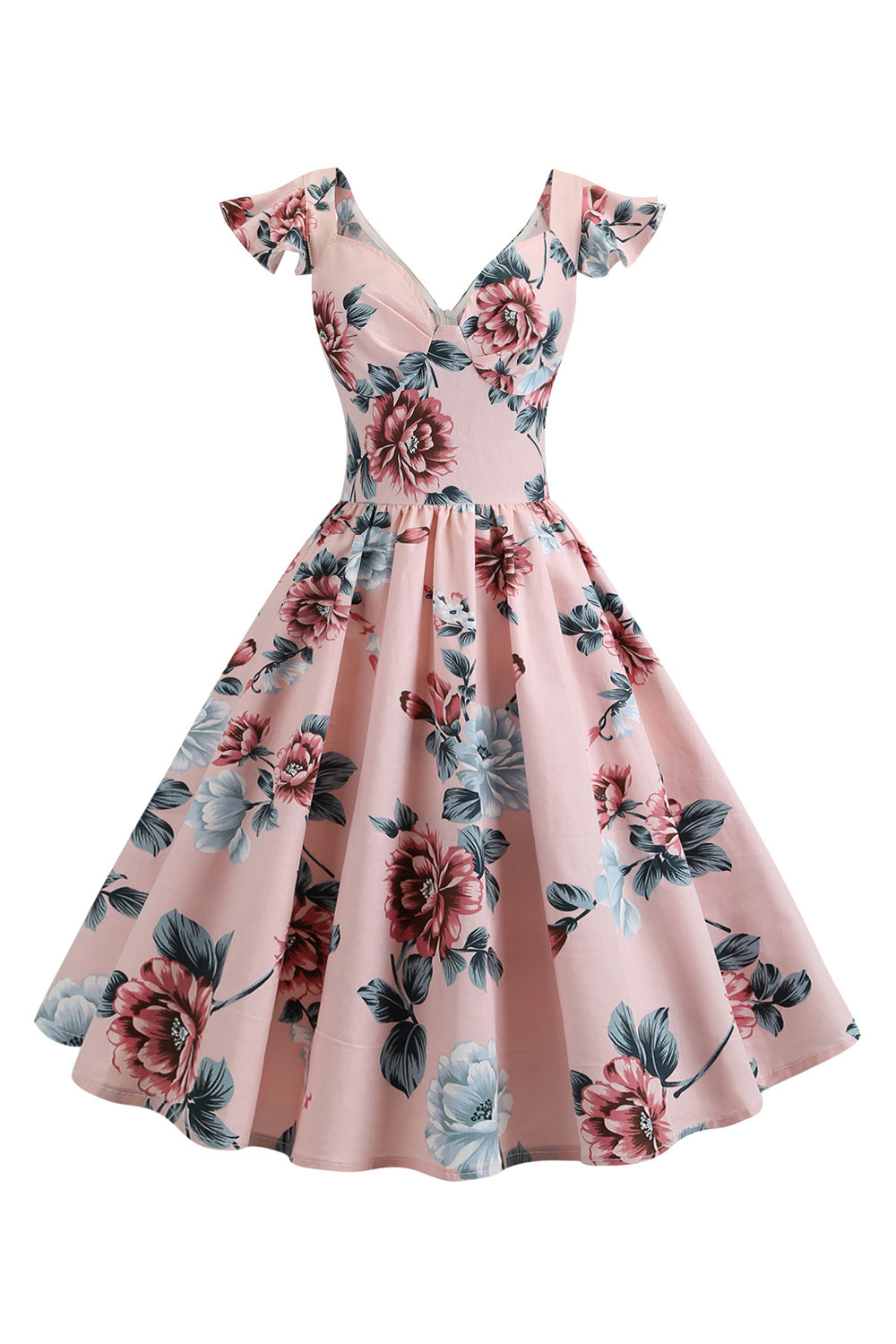 Różowa Kwiatowy Nadruk Sukienka Lata 50