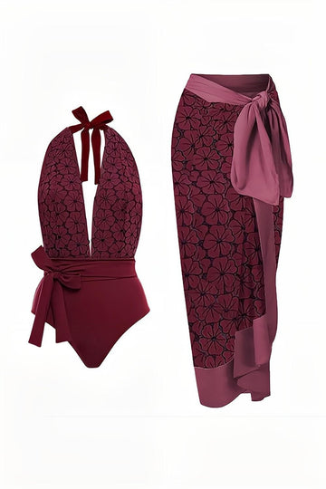 Dekolt Halter Biała Stroje Kąpielowe Ze Spódnicą Plażową