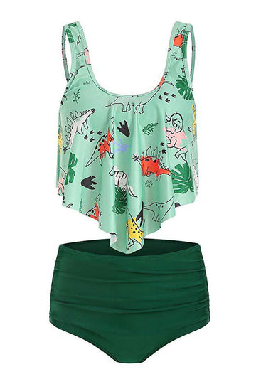 Dwuczęściowe Zielone Stroje Kąpielowe Tankini Z Nadrukiem