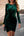 Ciemnozielona aksamitna sukienka z dekoltem w serek z falbankami z 1950 roku