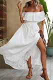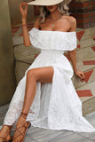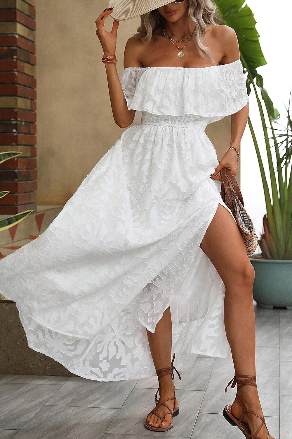 Biała Kształcie Litery A Długa Sukienka na Półmetek z Rozcięciem