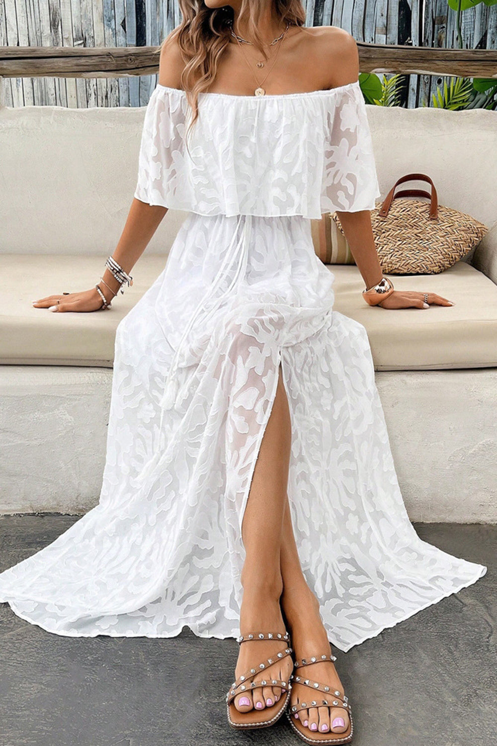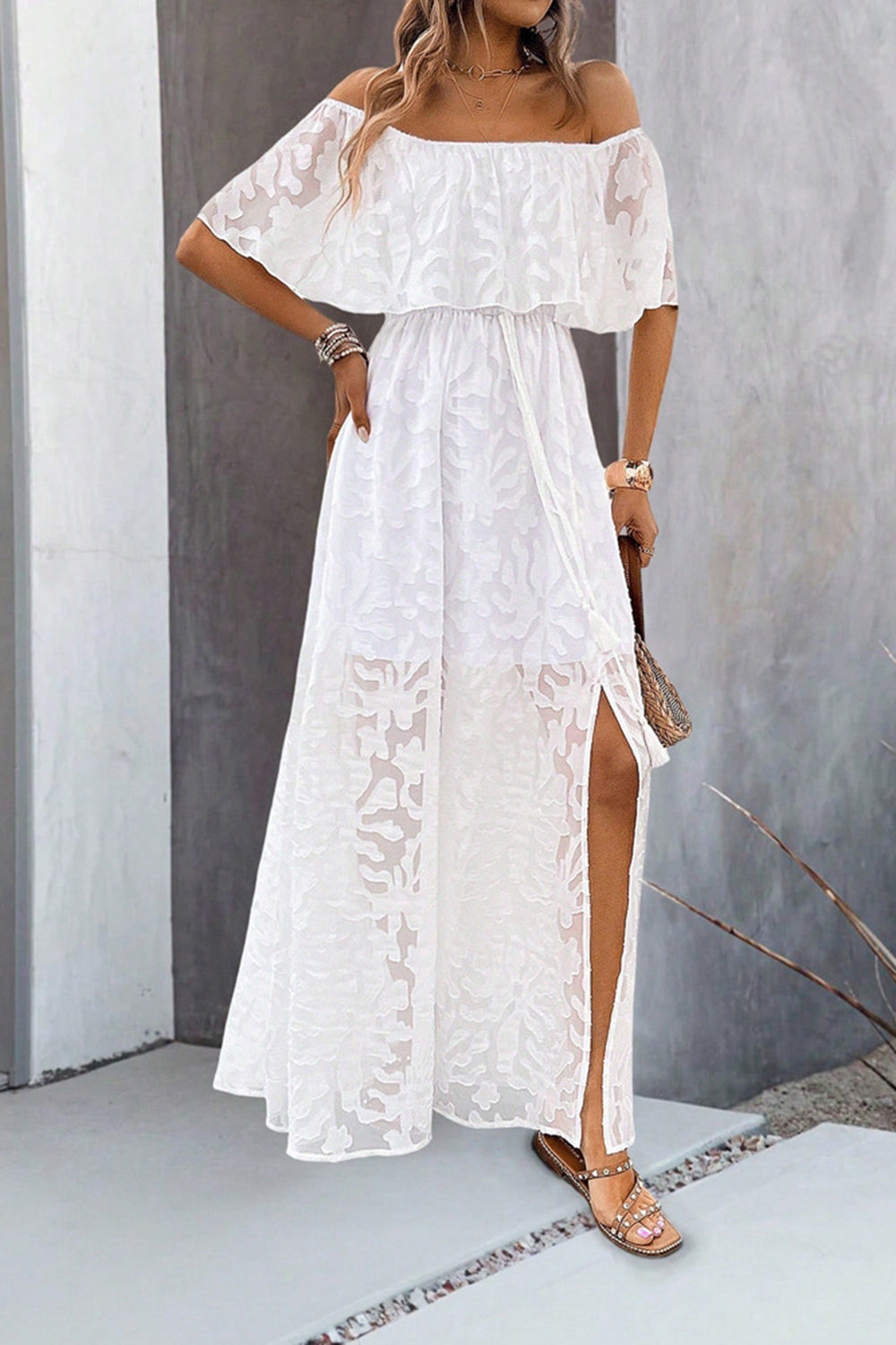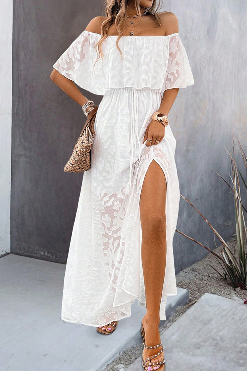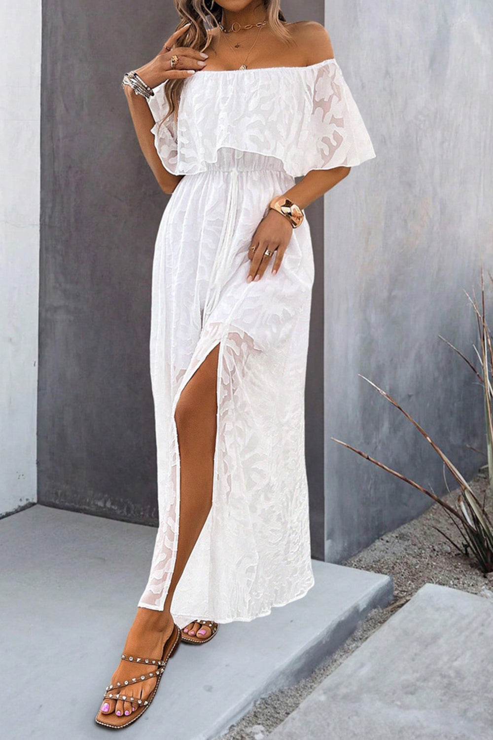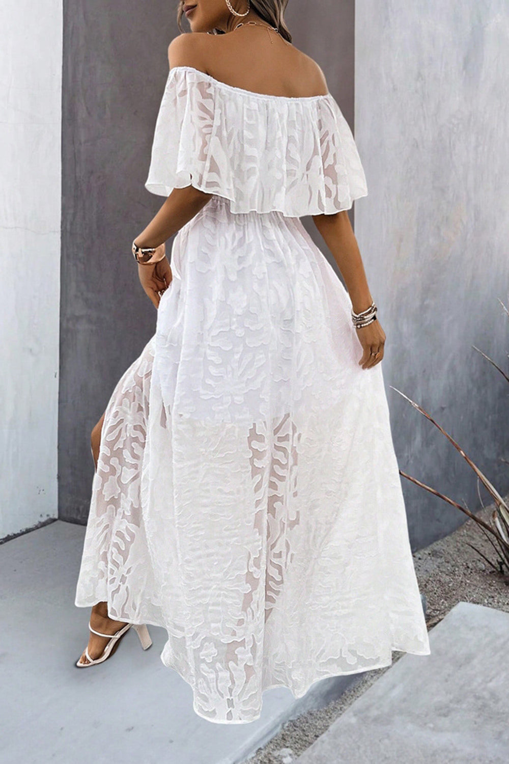 Biała linia z rękawami z falbankami na ramionach Sukienka dla gości weselnych