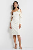 Biała sukienka robocza bodycon na jedno ramię z kwiatem 3D