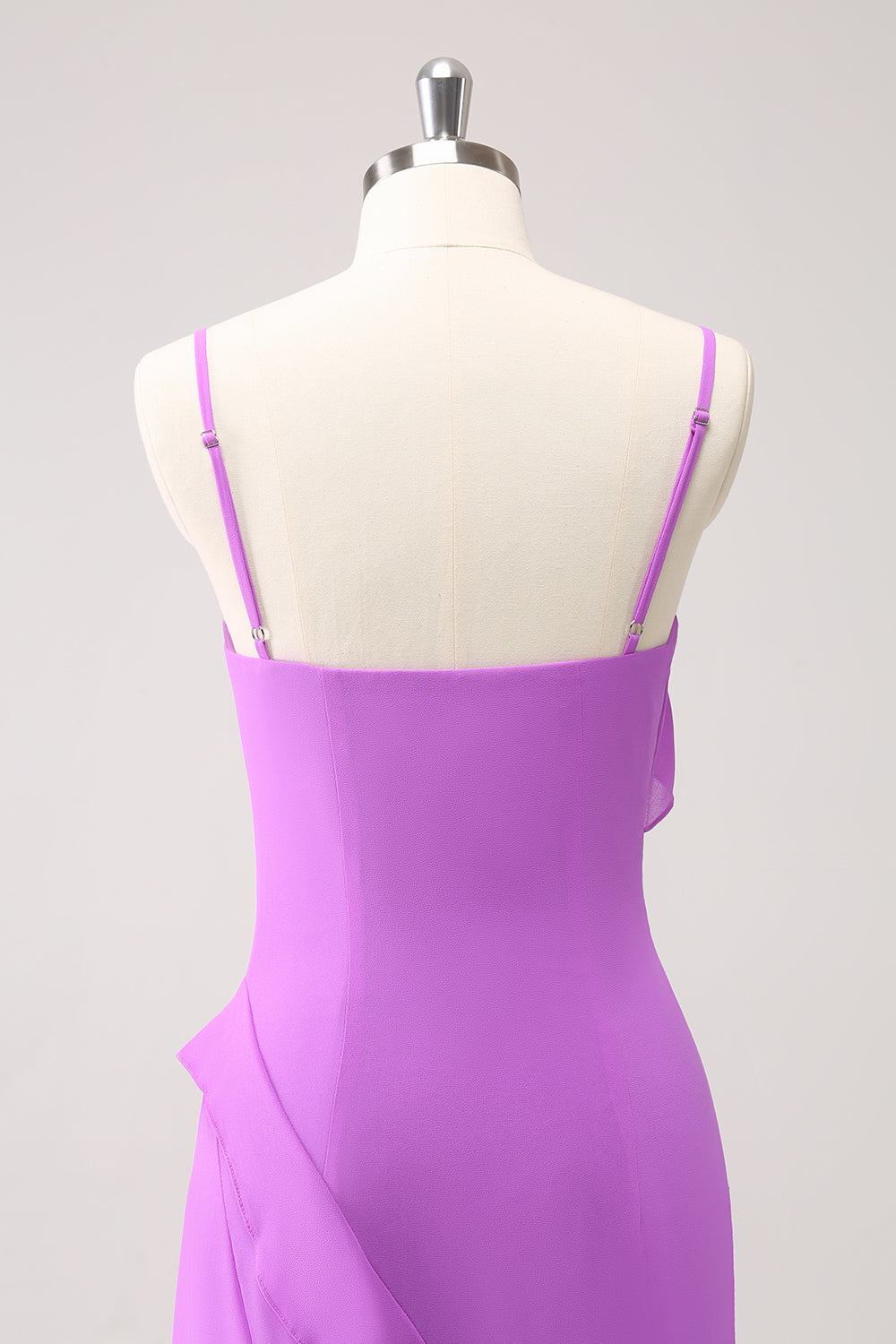 Tahiti Ruffle Spaghetti Ramiączka Szyfonowa długa sukienka druhny z rozcięciem