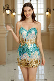 Unikalne paski spaghetti w pochwie Niebieskie cekiny Krótka sukienka Homecoming