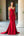 Czerwona Linia W Szpic Długa Sukienka Z Rozcięciem