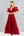 Czerwona Linia Potargana Latające Rękawy Długa Formalna Sukienka