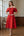 Czerwona letnia sukienka z dekoltem w szpic i długimi rękawami z dekoltem w szpic