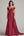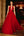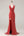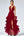 Długa sukienka na czerwonym dywanie z falbanami i marszczkami na ramiączkach