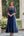 Elegancka granatowa szyfonowa sukienka z dekoltem w serek w kształcie litery A z rękawem 3/4