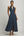 Granatowa 2-częściowa sukienka z dekoltem w serek dla matki panny młodej z zakładkami
