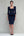 Granatowa dwurzędowa satynowa krótka sukienka robocza z klapami w szpic