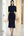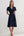 Granatowa sukienka robocza z klapami w kształcie kropli do herbaty