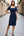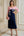 Granatowa sukienka robocza midi z krótkimi rękawami