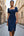 Granatowa sukienka z matką panny młodej z wysokimi niskimi podeszwami z aplikacjami