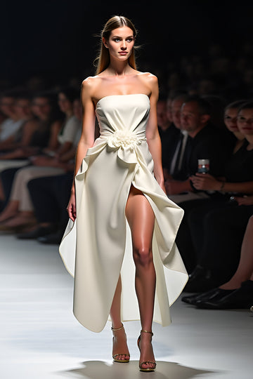 Biała sukienka galowa bez ramiączek z ruched 3D Flower