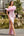 Jasnoróżowa sukienka wieczorowa na ramiączkach spaghetti z nadrukiem z rozcięciem