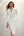 Jednorzędowa sukienka robocza z wycięciami w kolorze kości słoniowej z klapami