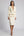Kość słoniowa i satynowa sukienka robocza z dekoltem w szpic i paskiem