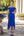 Królewski niebieski dekolt w serek z krótkimi rękawami i paskiem