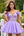 Lawendowa krótka tiulowa gorsetowa sukienka na powrót do domu z aplikacjami
