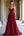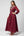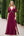 Linia ciemnoczerwona długa sukienka dla gości weselnych z paskiem