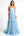 Linia Sky Blue Spaghetti Ramiączka Długa Satynowa Sukienka Na Studniówkę Z Rozcięciem