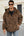 Męski płaszcz zimowy ze sztucznego futra Coffee Leopard z kieszeniami