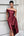 Marszczona obcisła sukienka galowa na jedno ramię bordowa do kolan
