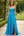 Niebieska Metaliczna Gorsetowa Długa Sukienka Na Studniówkę z Falbankami