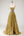 Metaliczny, złoty koralikowy korzes, długa sukienka na studniówkę z rozcięciem