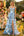 Biała, niebieska, kwiatowa, gorset bez ramiączek, wielopoziomowa długa sukienka balbalowa z rozcięciem