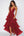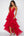 Potargana warstwowa czerwona szyfonowa sukienka na cienkie ramiączka wizytowe