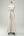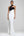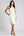 Prosta biała satynowa asymetryczna sukienka z wysokim dekoltem