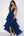 Princess A Line V Neck Niebieska Długa Sukienka Na Bal Z Falbankami Rozcięcie