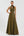 Oliwkowa pochwa z dekoltem w serek i marszczonym aksamitem – długa formalna sukienka z rozcięciem