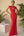 Rozciągliwa satynowa czerwona kolumna z okrągłym dekoltem z rękawami Formalna sukienka