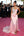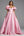 Różowa satynowa wiązana na szyi plisowana długa sukienka wizytowa